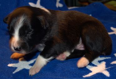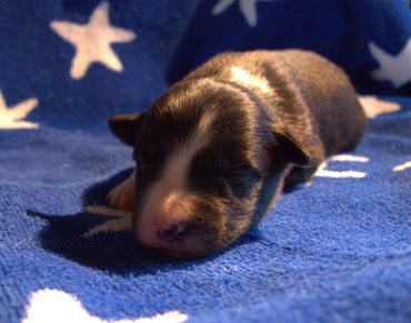 Monica and Avery are a band of trouble together. They run around together and when it is nap time they are piled on top of each other. These two operate on their own schedule. They sometimes sleep while the others are playing, and play while the others are sleeping. At six weeks Monica weighed in at 6 lb 12 oz.