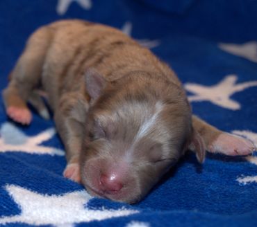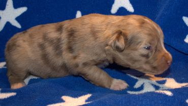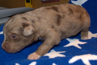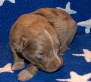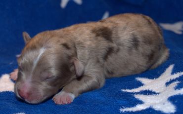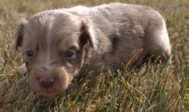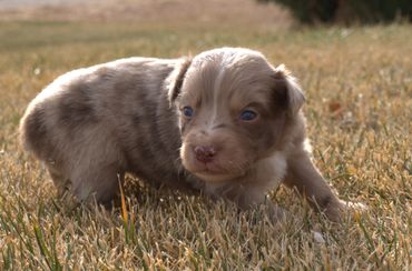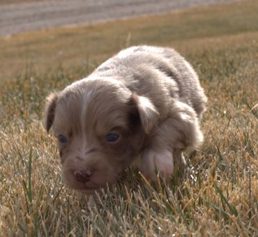 We are excited to announce that Teeter is staying here in Colorado and will be joining a family with another Aussie! Teeter is weighing in at 5 lbs 3 oz. This one is a lover. When we let them outside to play she wants to stick by you and cuddle in!